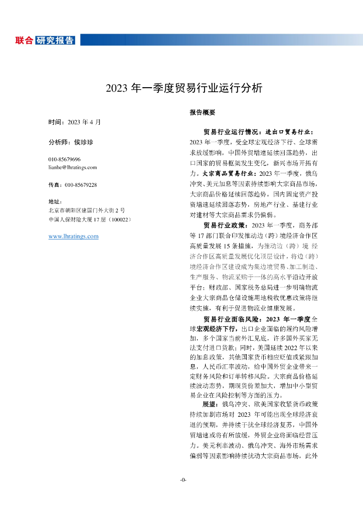 联合资信:2023年一季度贸易行业运行分析.pdf
