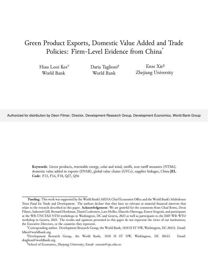 世界银行:绿色产品出口、国内附加值与贸易政策:来自中国的企业层面证据(英文版).pdf