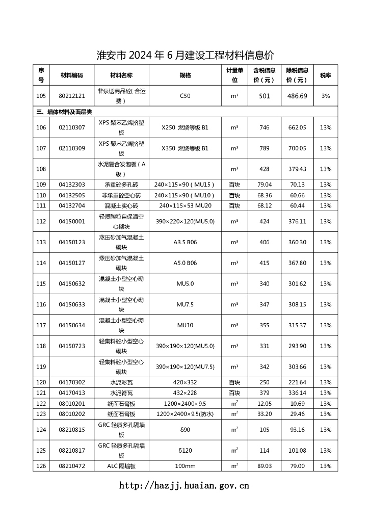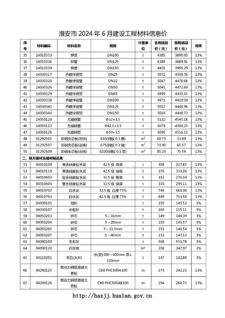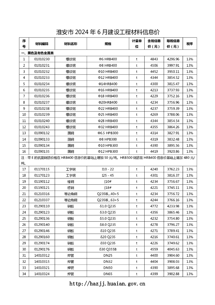 淮安市 2024 年 6 月建设工程材料信息价.pdf