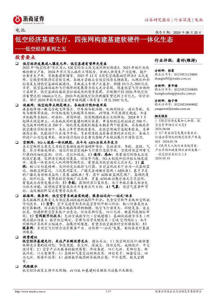 浙商证券:电池:低空经济系列之五:低空经济基建先行,四张网构建基建软硬件一体化生态.pdf