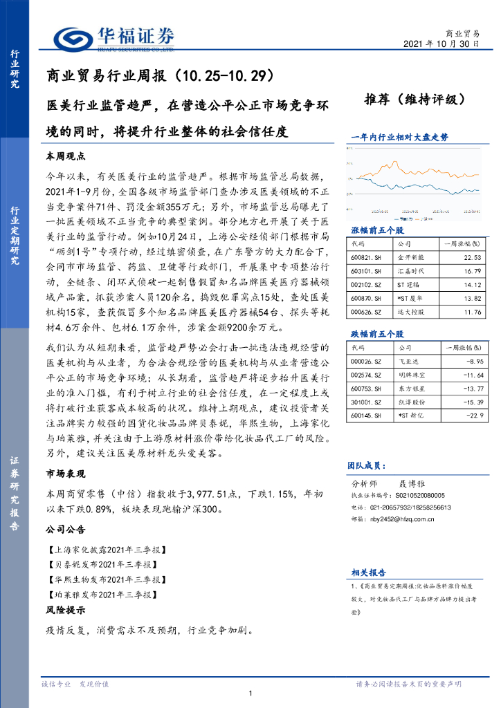 华福证券:商业贸易行业周报:医美行业监管趋严,在营造公平公正市场竞争环境的同时,将提升行业整体的社会信任度.pdf