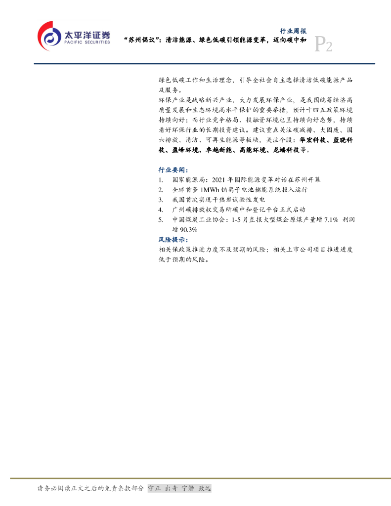 太平洋证券:公用事业行业周报:“苏州倡议”:清洁能源、绿色低碳引领能源变革,迈向碳中和.pdf