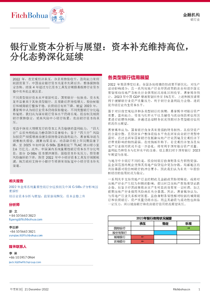 惠誉博华:银行业资本分析与展望:资本补充维持高位,分化态势深化延续.pdf