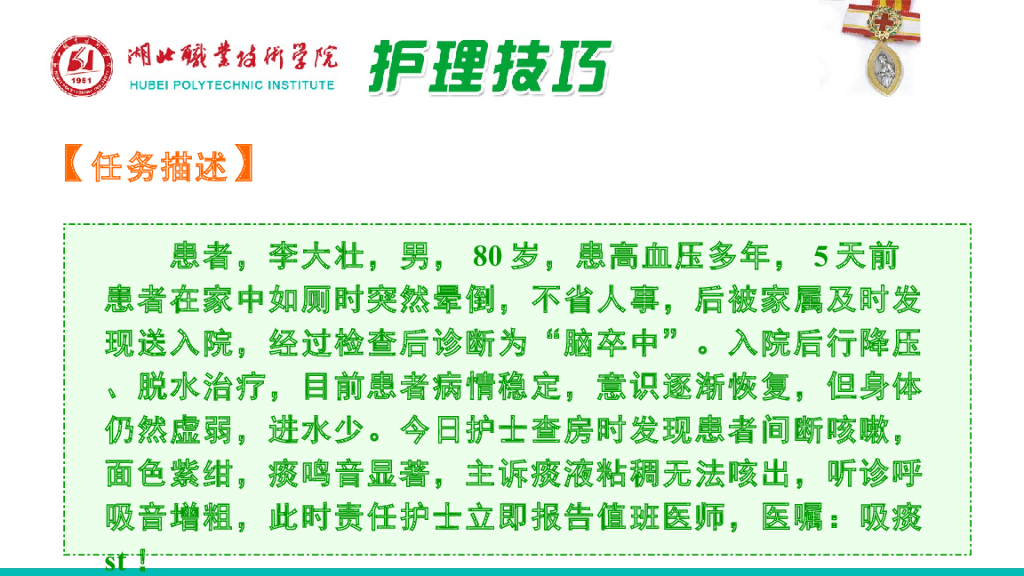 《护理技巧》演示文稿-任务三 促进患者排痰.pdf