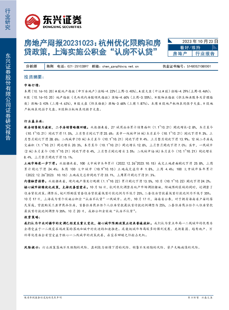 东兴证券:房地产周报:杭州优化限购和房贷政策,上海实施公积金“认房不认贷”.pdf