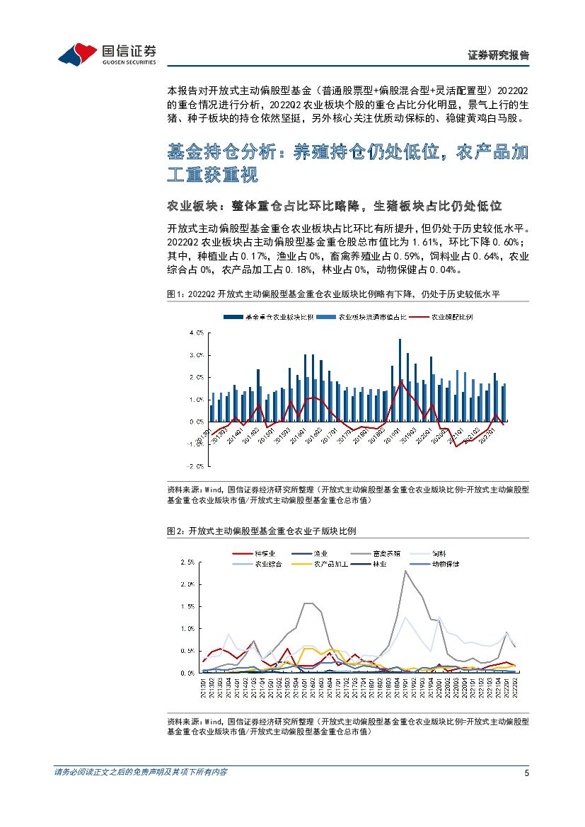国信证券:农林牧渔2022Q2基金持仓分析:养殖链持仓环比回落,种植持仓彰显韧性.pdf