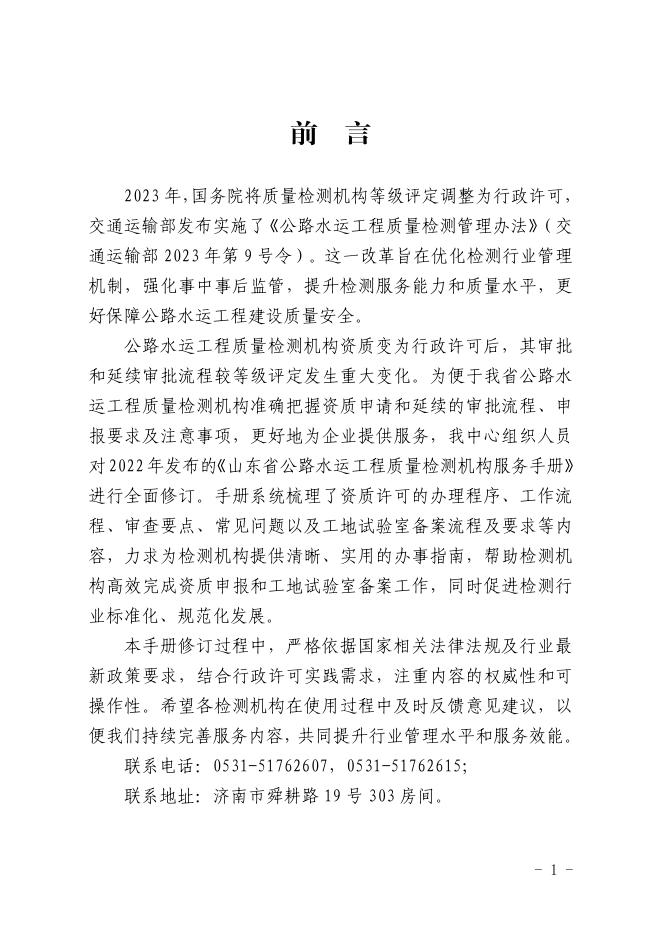 山东省交通运输厅:2025年山东省公路水运工程质量检测机构服务手册(修订版).pdf