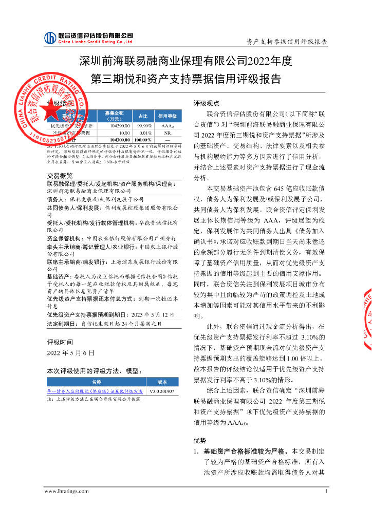 联合资信:深圳前海联易融商业保理有限公司2022年度第三期悦和资产支持票据信用评级报告.pdf