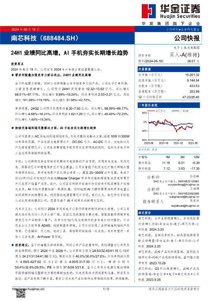 华金证券:南芯科技(688484)-24H1业绩同比高增,AI手机夯实长期增长趋势.pdf