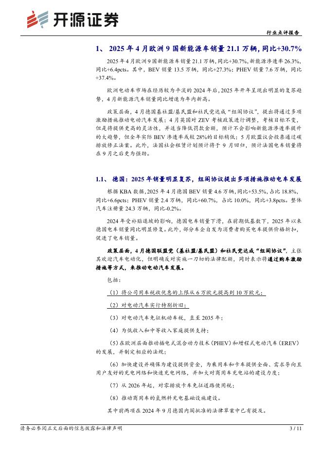 开源证券:电力设备行业点评报告:欧洲电动车销量月报(2025年4月):复苏趋势确立,4月同比增速创年内新高.pdf