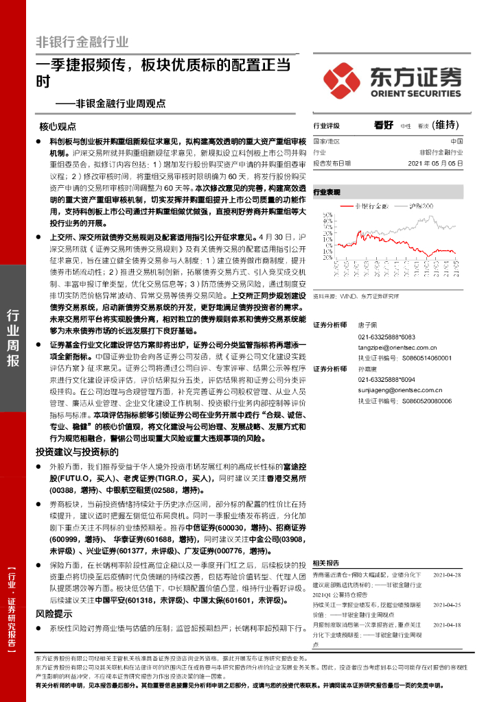 东方证券:非银金融行业周观点:一季捷报频传,板块优质标的配置正当时.pdf
