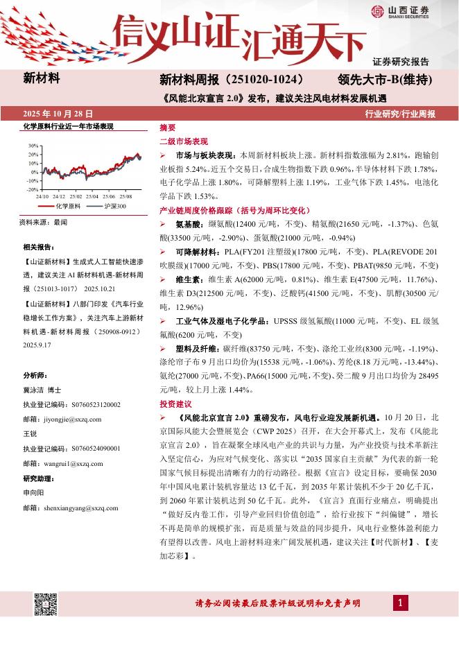 山西证券:新材料行业周报:《风能北京宣言2.0》发布,建议关注风电材料发展机遇.pdf