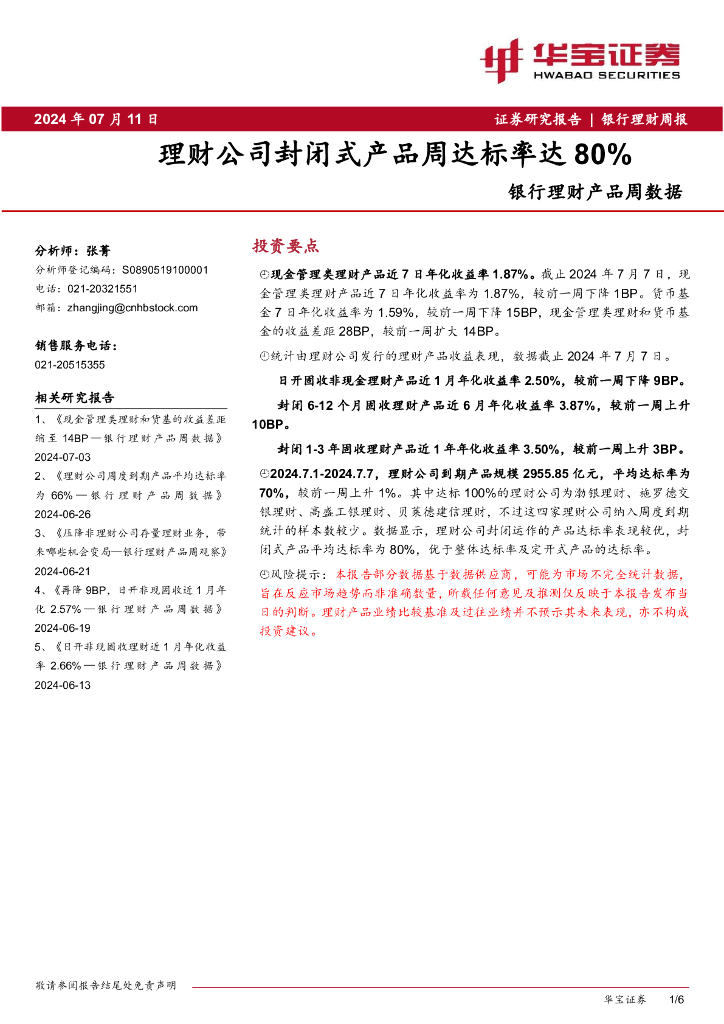 华宝证券:银行理财产品周数据:理财公司封闭式产品周达标率达80%.pdf
