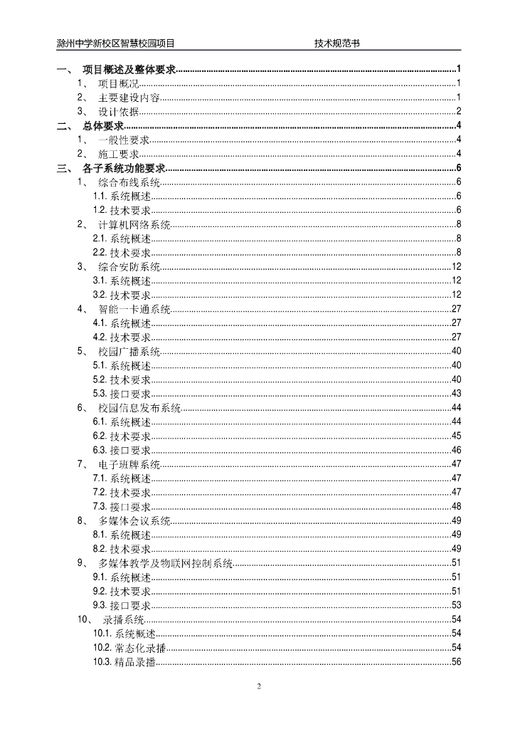 滁州中学新校区智慧校园项目 技术规范书.doc