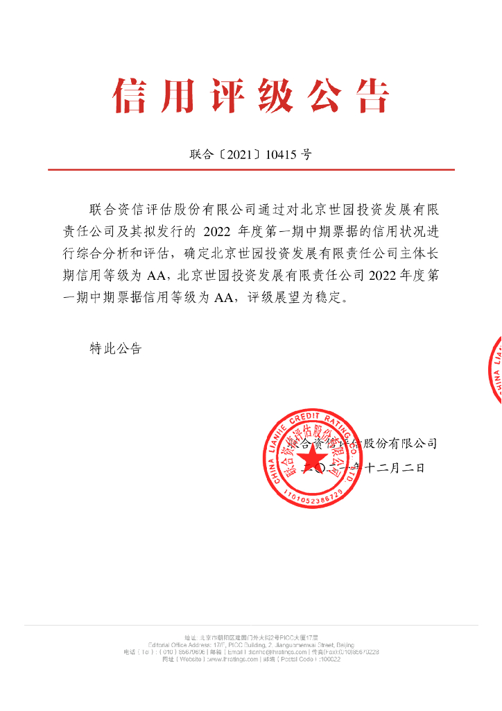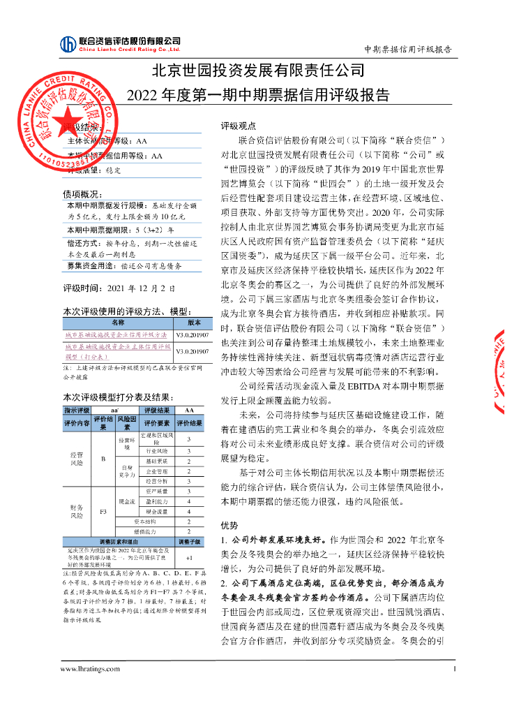 联合资信:北京世园投资发展有限责任公司2022年度第一期中期票据信用评级报告.pdf