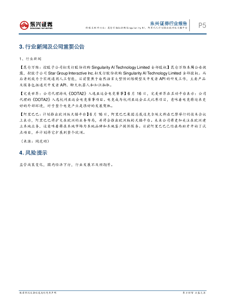 东兴证券:传媒互联网行业:昆仑万维拟收购Singularity AI,阿里巴巴计划推出欧洲版天猫平台.pdf