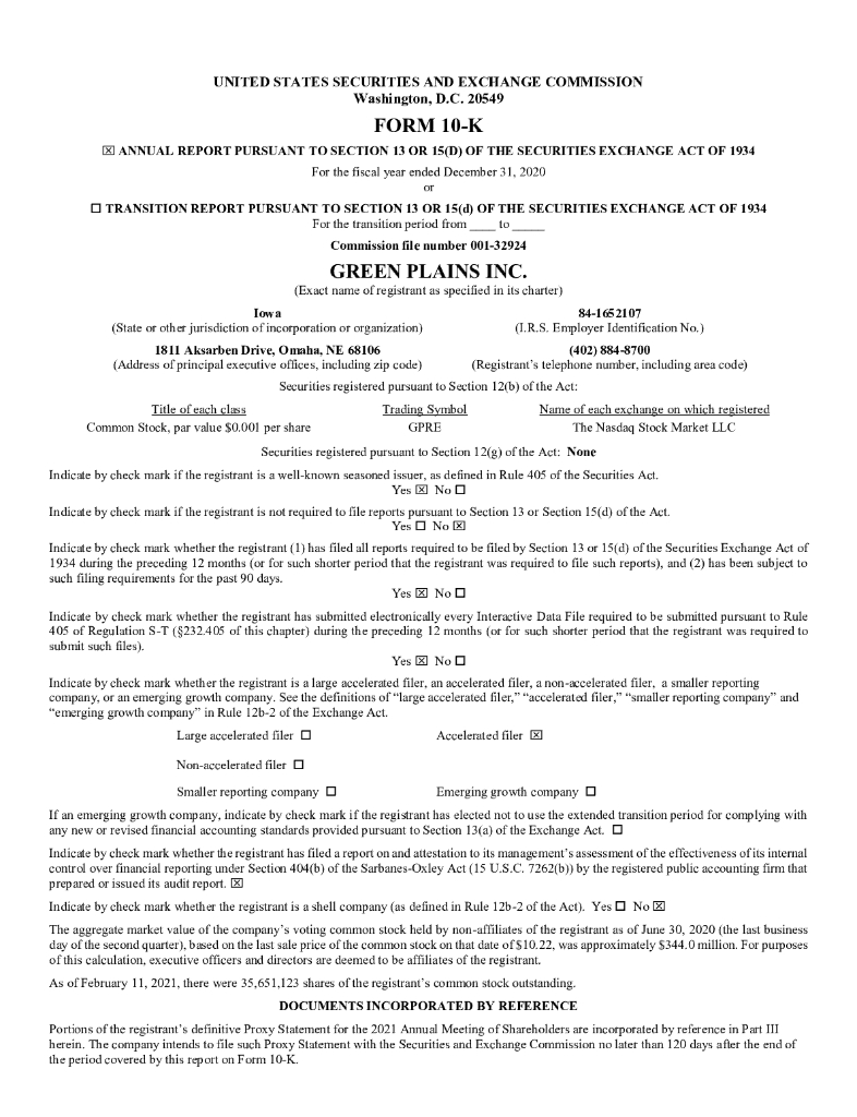 Green Plains Inc.(GPRE)2020财年年度报告(英文版).pdf