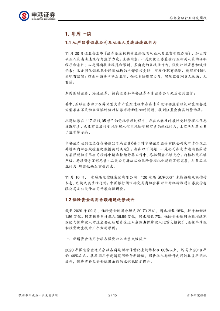 申港证券:非银金融行业周报:从严监管证券公司从业人员 保险资金运用余额增速逆势提升.pdf