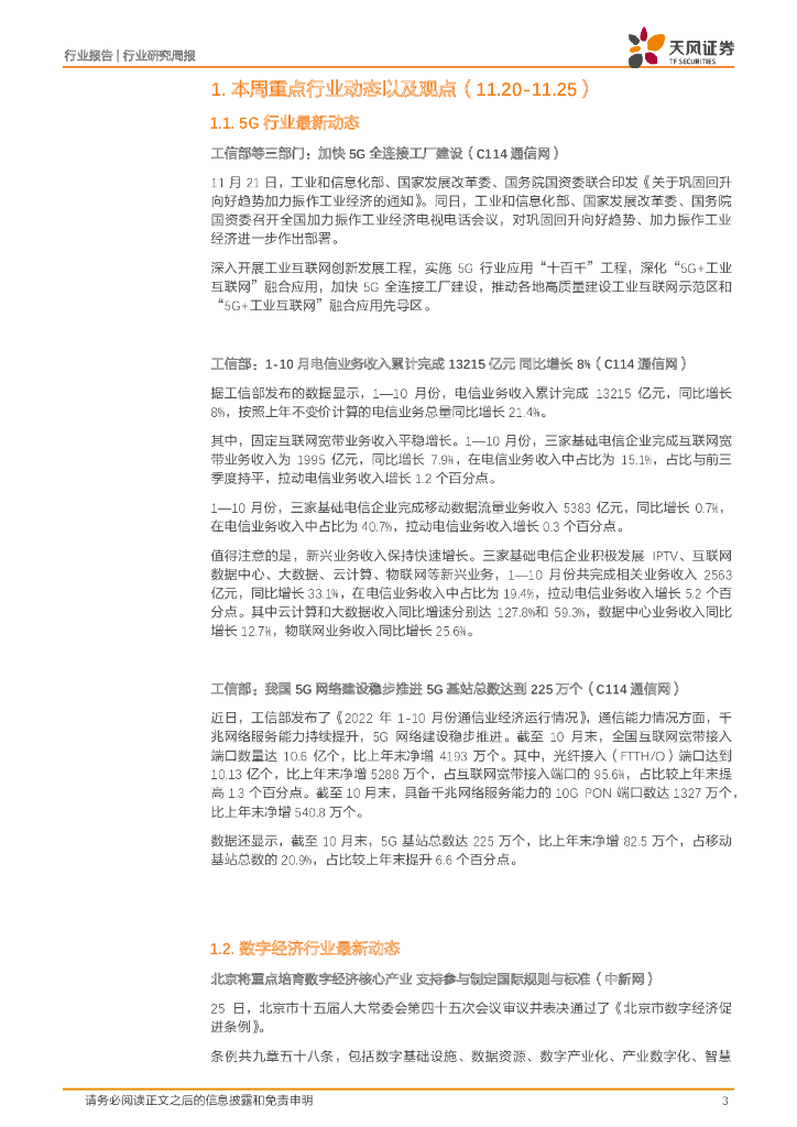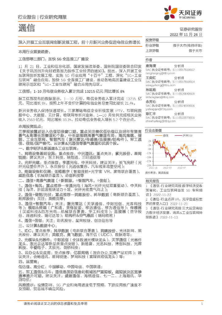 天风证券:通信行业研究周报:深入开展工业互联网创新发展工程,前十月新兴业务促进电信业务增长.pdf