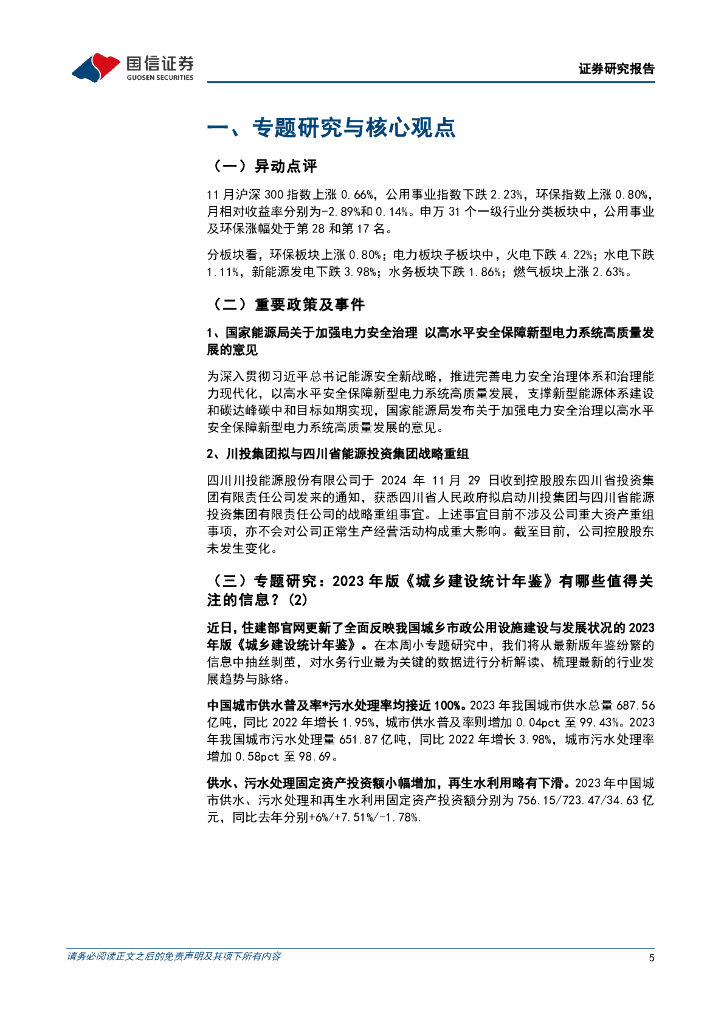 国信证券:公用环保2024年12月投资策略:川投集团拟与四川省能源投资集团战略重组,广东省2025年电力市场交易方案出台.pdf