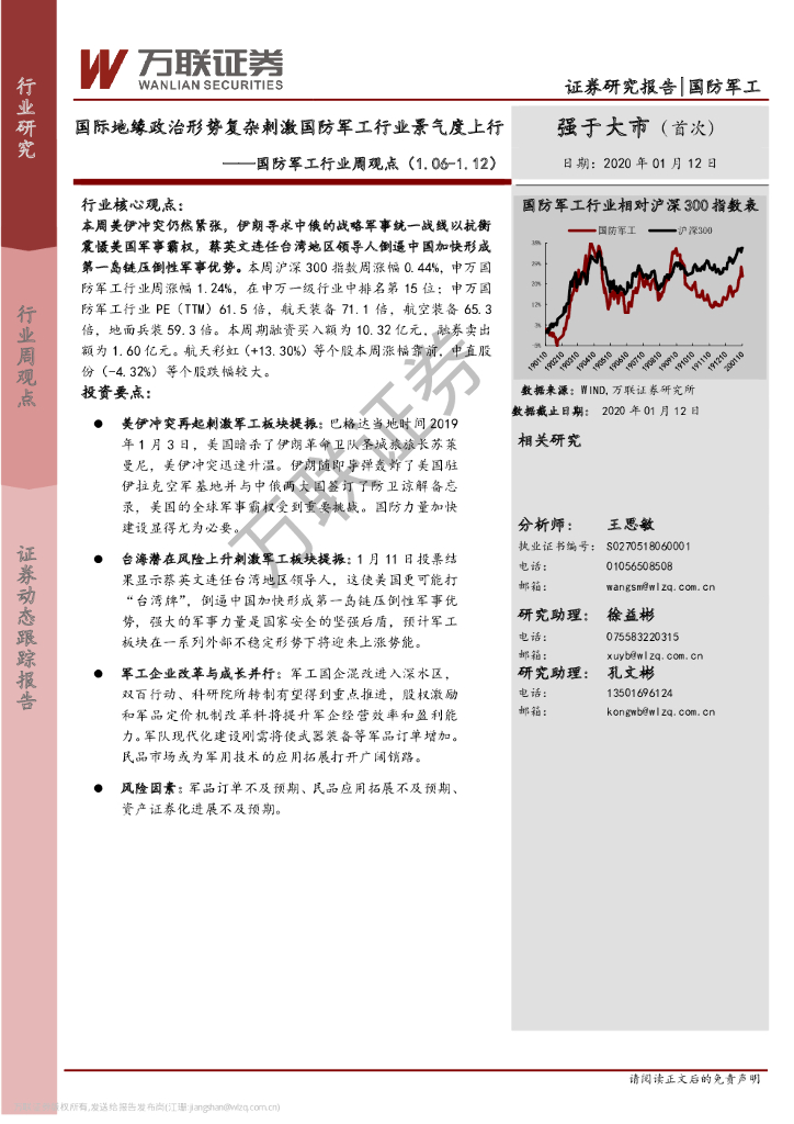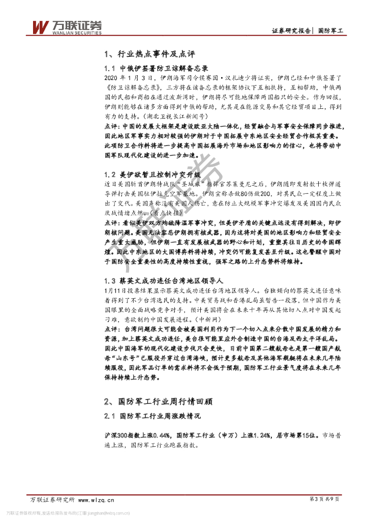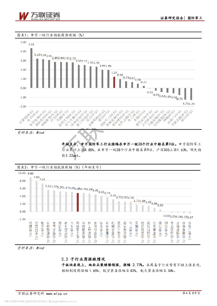 万联证券:国防军工行业周观点:国际地缘政治形势复杂刺激国防军工行业景气度上行.pdf