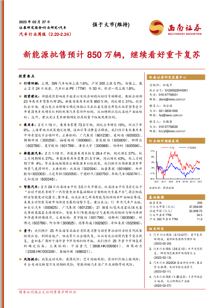 西南证券:汽车行业周报:新能源批售预计850万辆,继续看好重卡复苏.pdf