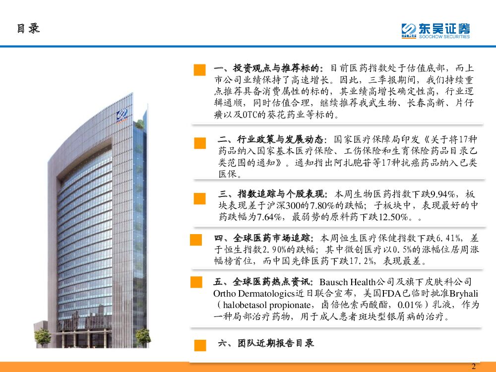 东吴证券:东吴医药行业周观点:17种抗癌药纳入医保报销目录,癌症治疗进入医保报销时代,大病种药品以价换量将成为主旋律.pdf