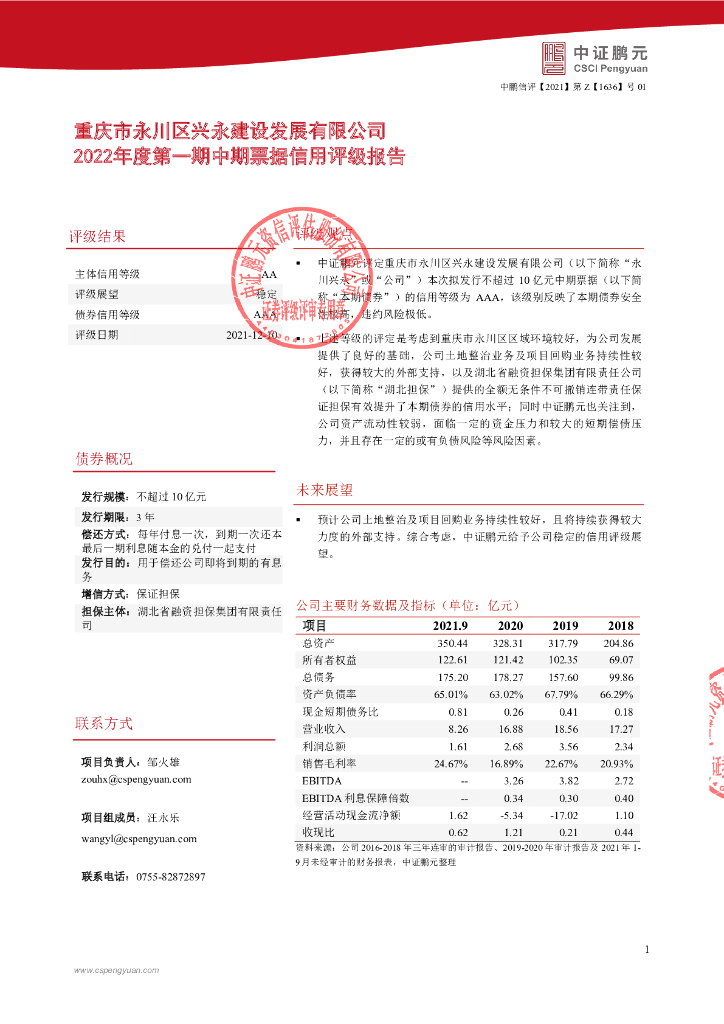 鹏元:重庆市永川区兴永建设发展有限公司2022年度第一期中期票据信用评级报告.pdf
