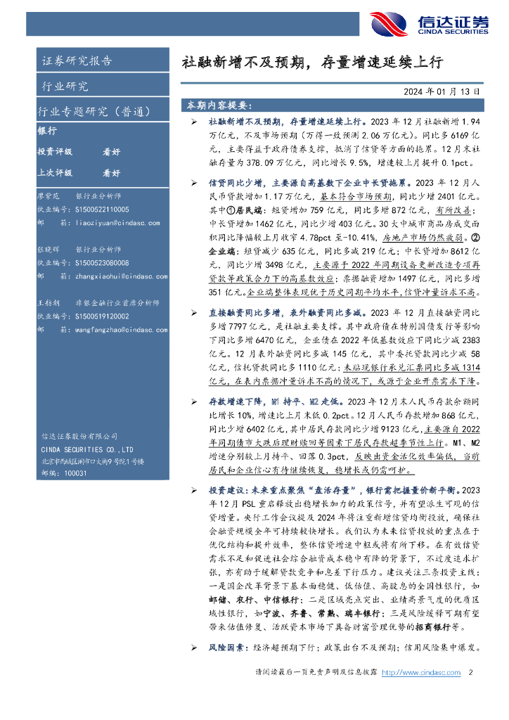 信达证券:银行行业专题研究(普通):社融新增不及预期,存量增速延续上行.pdf