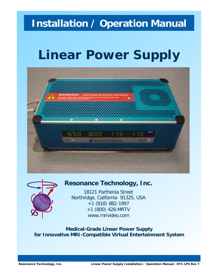 Resonance Technology, Inc.线性电源安装和操作手册.pdf