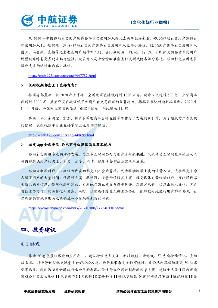 中航证券:文化传媒行业周报:科技加持,“社交+”助推新型娱乐消费.pdf