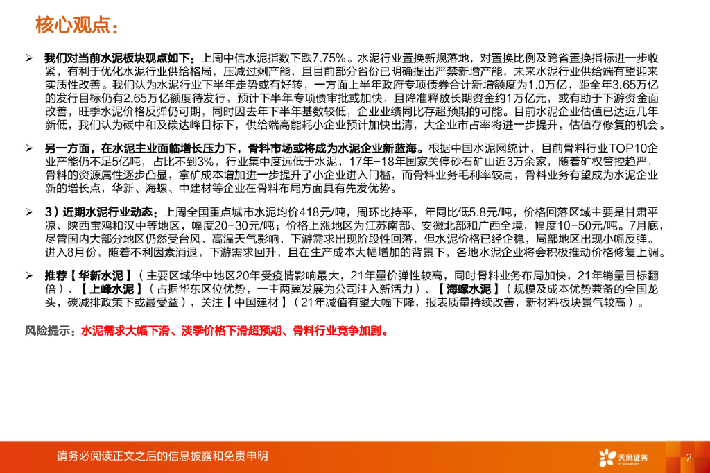 天风证券:水泥制造行业研究周报:8月全国水泥价格有望开启反弹.pdf
