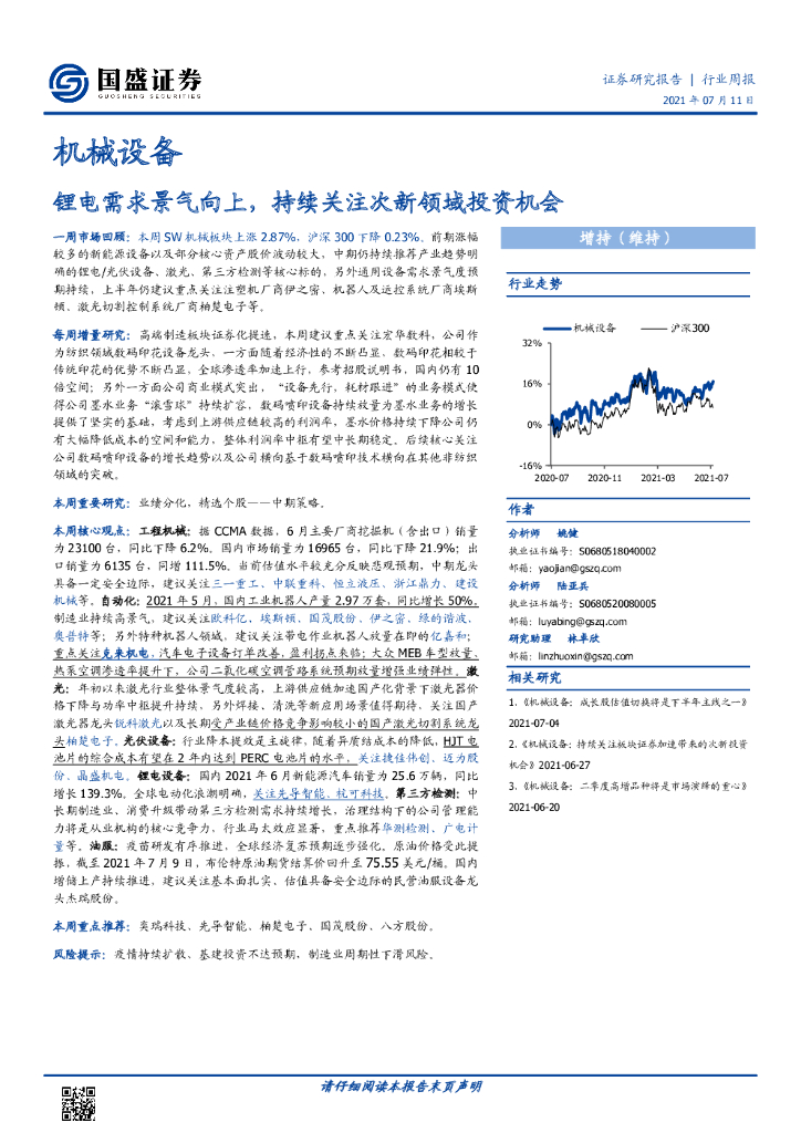 国盛证券:机械设备行业周报:锂电需求景气向上,持续关注次新领域投资机会.pdf