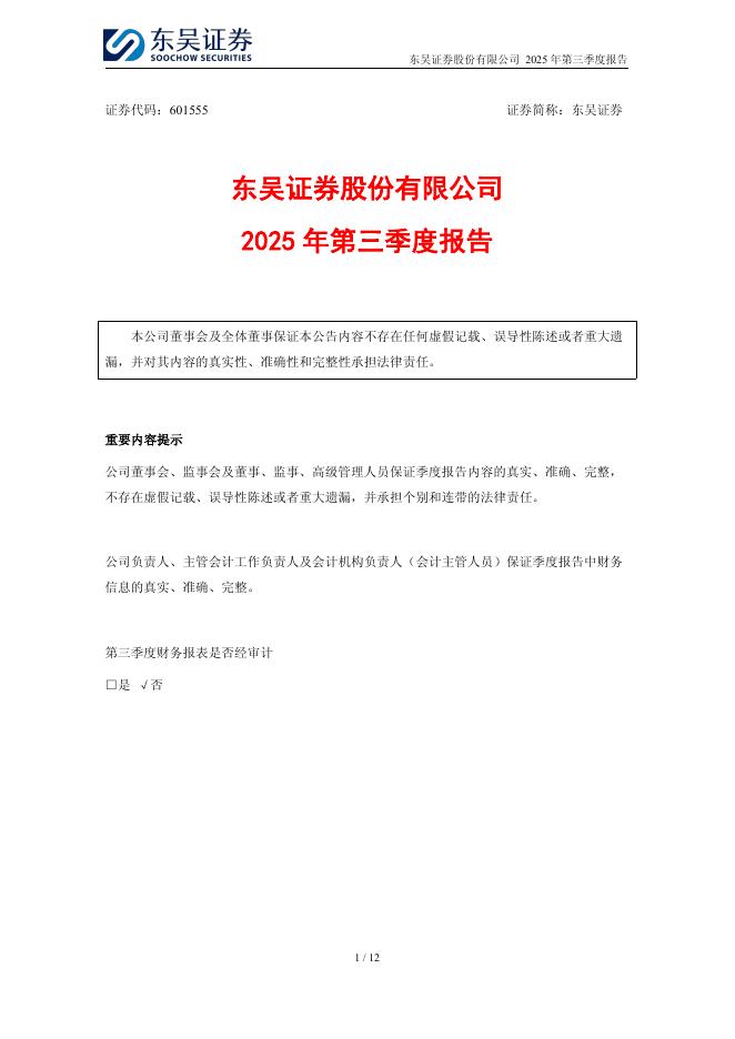601555-东吴证券:东吴证券股份有限公司2025年第三季度报告.pdf