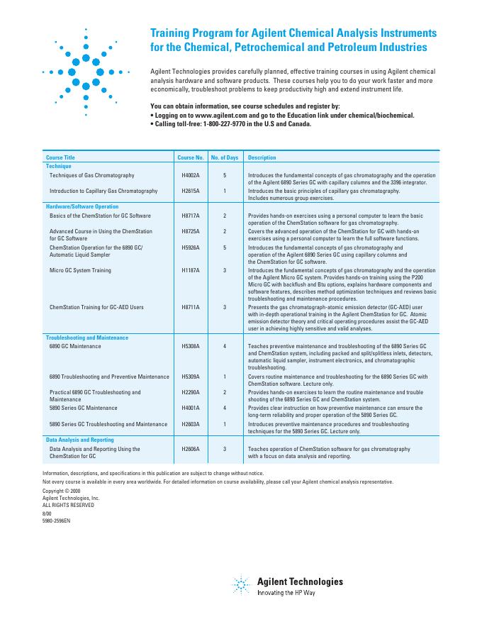 Agilent Training Program for Agilent Chemical Analysis Instruments for the Chemical, Petrochemical, and Petroleum Industries 数据手册.pdf