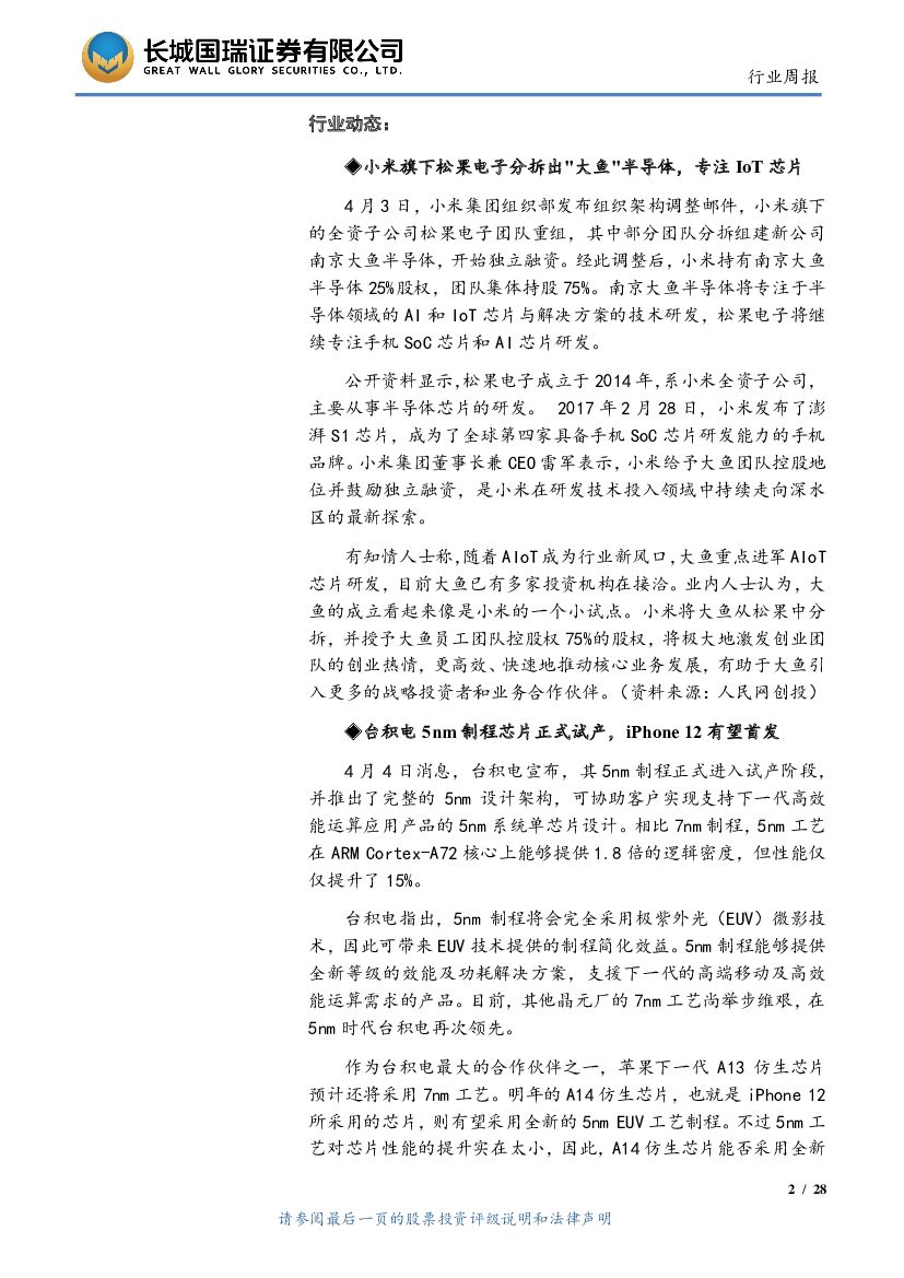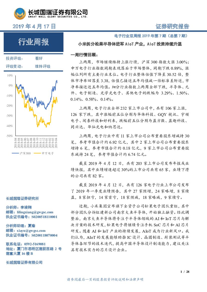 长城国瑞证券:电子行业双周报2019年第7期(总第7期):小米拆分松果半导体进军AIoT产业,AIoT投资持续升温.pdf