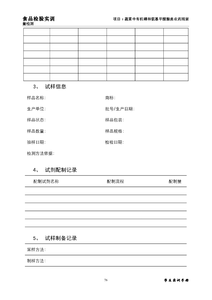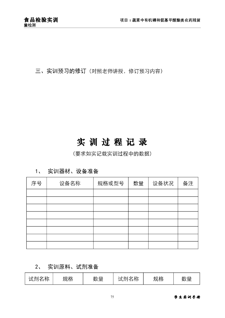 《食品检验》实训指导书-蔬菜中药物残留的测定.pdf