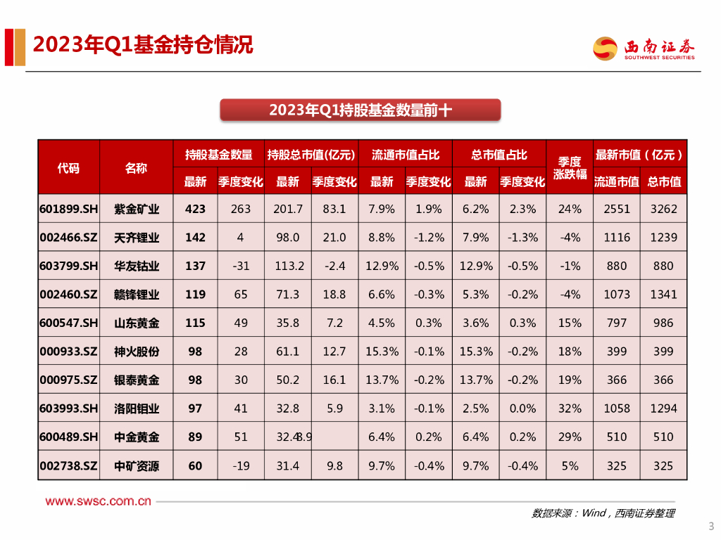 西南证券:有色金属行业2023Q1机构持仓分析:行业配置环比下滑,贵金属表现亮眼.pdf