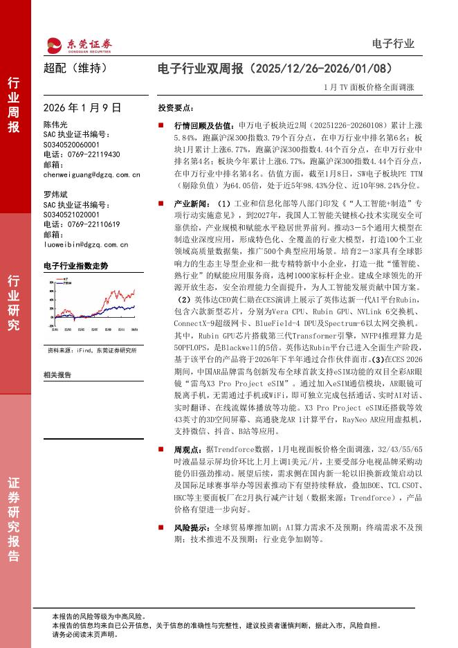 东莞证券:电子行业双周报:1月TV面板价格全面调涨.pdf