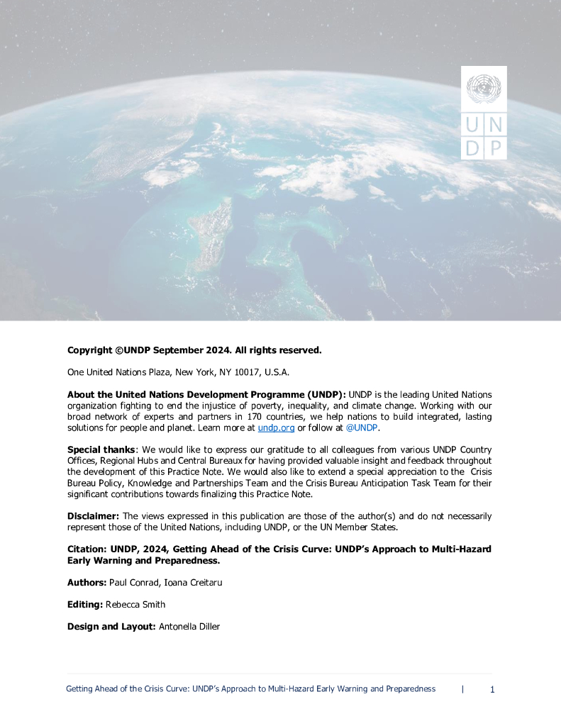 联合国开发计划署UNDP:2024年走在危机曲线之前:开发署应对多种灾害预警和准备的方法报告(英文版).pdf