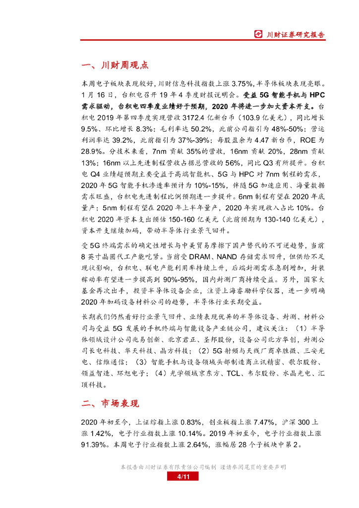 川财证券:电子行业周报:台积电资本开支上调,半导体景气仍将持续.pdf