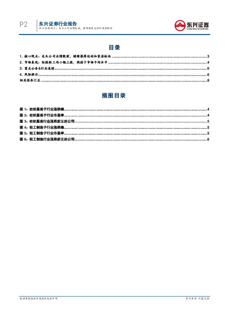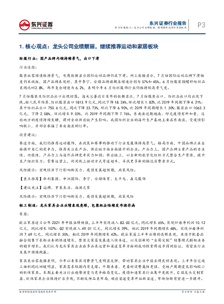 东兴证券:东兴纺服轻工行业周观点:龙头公司业绩靓丽,继续推荐运动和家居板块.pdf