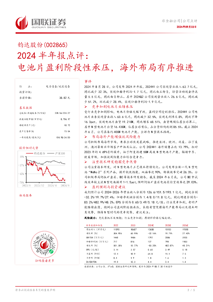 国联证券:钧达股份(002865)-2024半年报点评:电池片盈利阶段性承压,海外布局有序推进.pdf