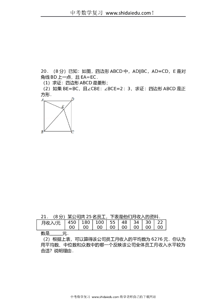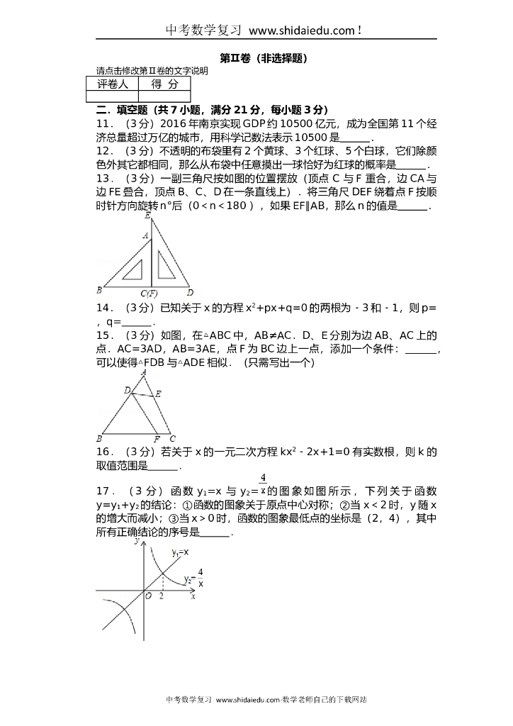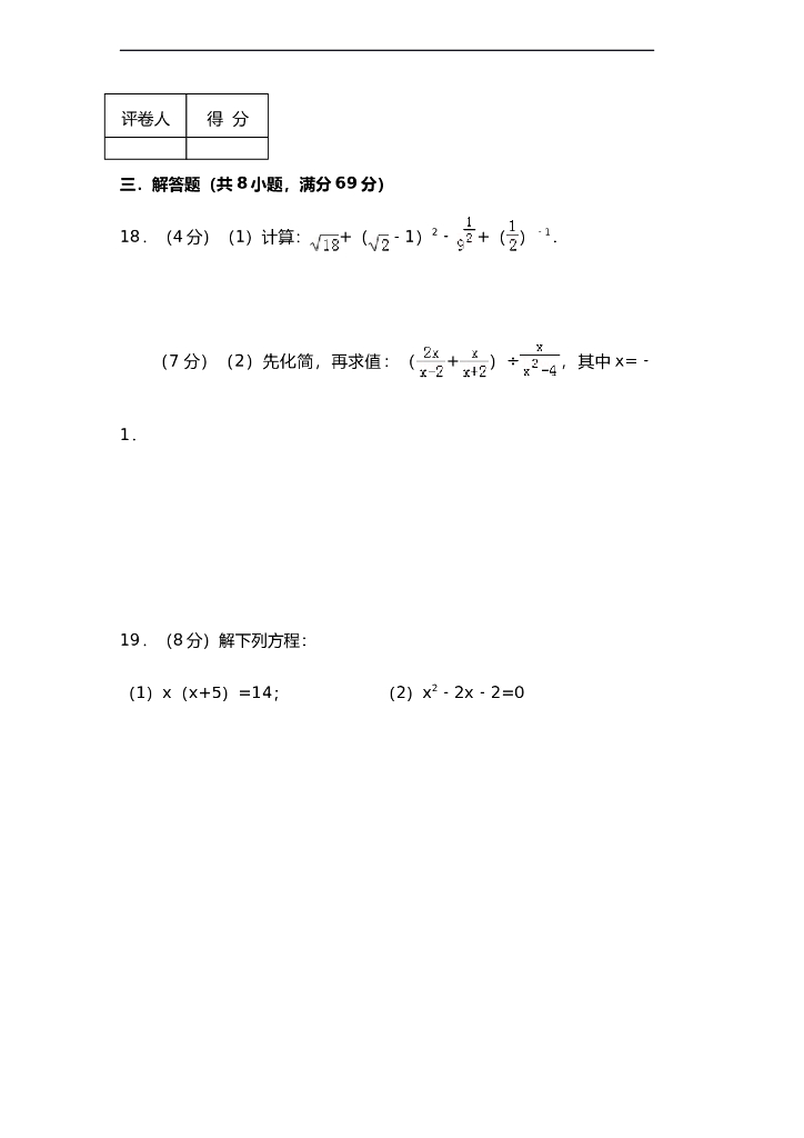 九年级数学中考模拟考试题及答案解析.doc