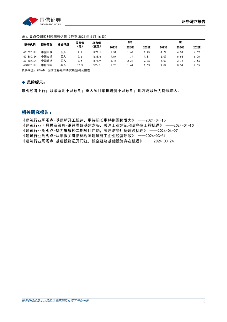国信证券:建筑装饰行业统计局2024年1-3月基建数据点评:基建投资维持稳健增长,交通领域投资略放缓.pdf