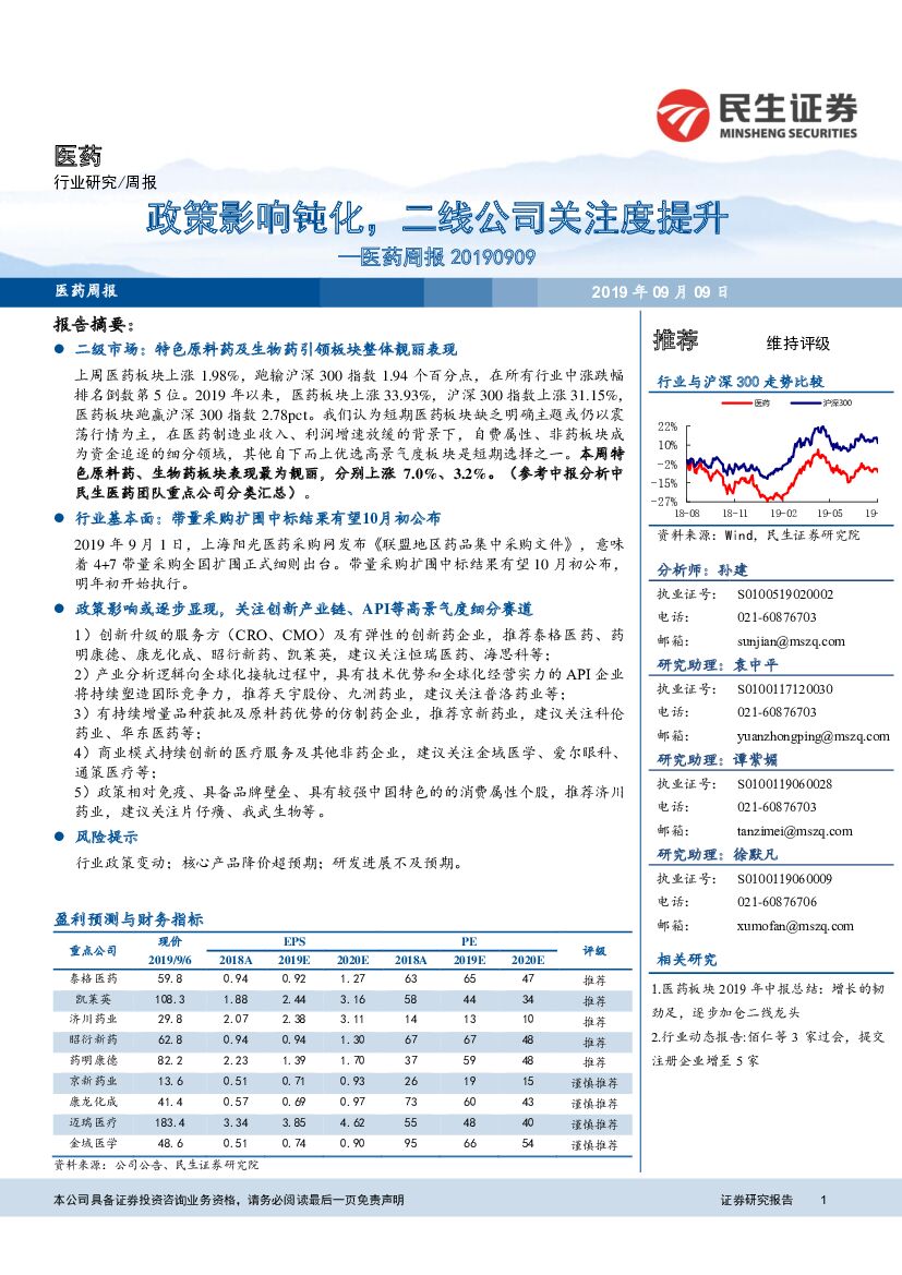 民生证券:医药周报:政策影响钝化,二线公司关注度提升.pdf