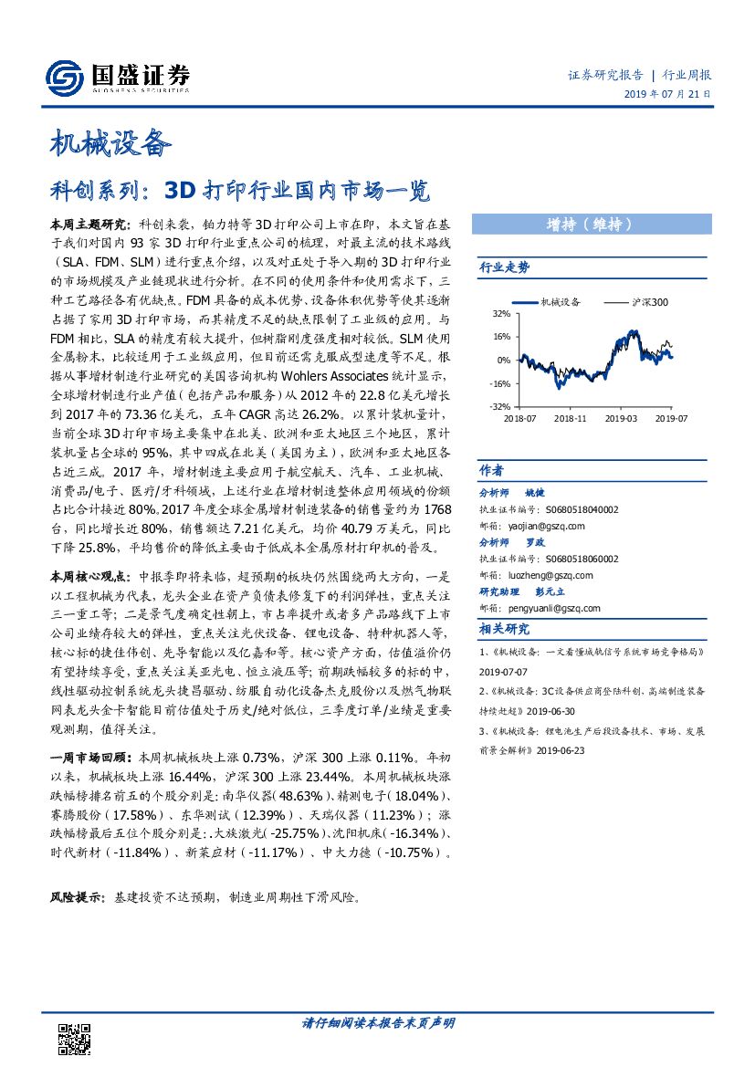 国盛证券:机械设备科创系列:3D打印行业国内市场一览.pdf