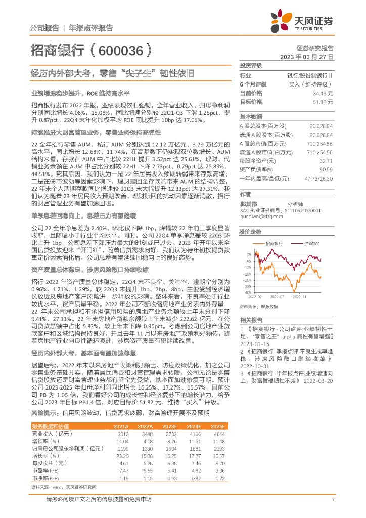 天风证券:招商银行(600036)-经历内外部大考,零售“尖子生”韧性依旧.pdf