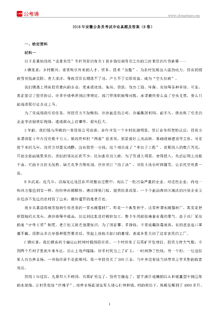 2018年安徽公务员考试申论真题及答案(B卷).pdf