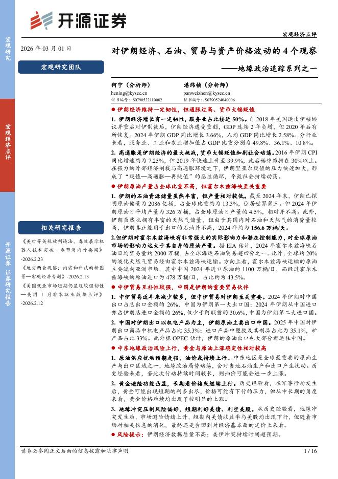 开源证券:地缘政治追踪系列之一:对伊朗经济、石油、贸易与资产价格波动的4个观察-260301.pdf